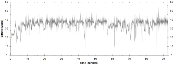 NOTE: The Vertical axis represents the bits transferred per second. The Horizontal is the time in minutes. |