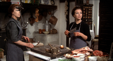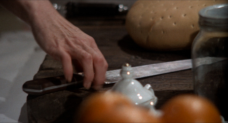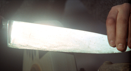 editing amplifies this: cuts to flaming ovens, sharpening blades, or