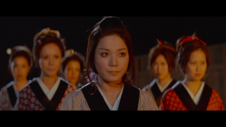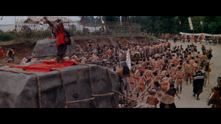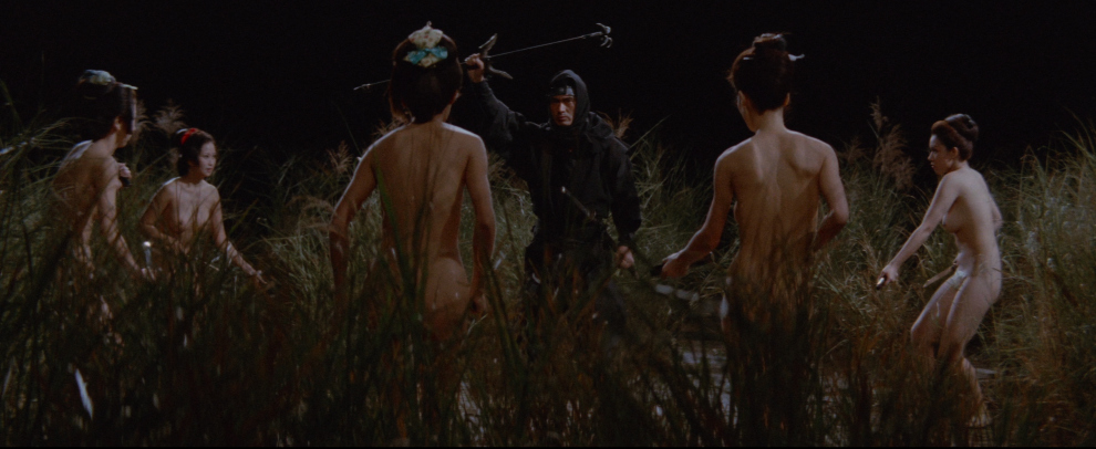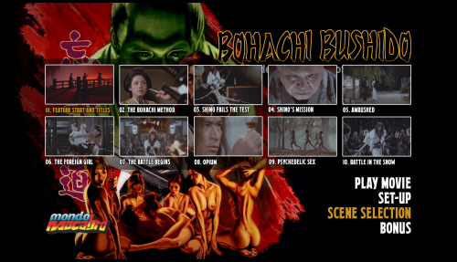 On the 4K UHD Mondo Macabro duplicate their own Blu-ray supplements that provide extensive context for Bohachi Bushido’s place in Japanese cinema, catering to both casual fans and scholars of exploitation genres. The new audio commentary by Japanese film expert Tom Mes (Japanese Film and the Challenge of Video) is informative, offering an in-depth analysis of the film’s historical backdrop, including the decline of 1960s Japanese studio cinema, the rise of pink films, and Teruo Ishii’s subversive take on jidaigeki conventions. Mes delves into the film’s ero guro roots and its critique of Edo-era corruption. The archive audio commentary in Japanese with optional English subtitles (see sample below) featuring filmmakers J-Taro Sugisaku and Takao Nakano is more conversational, providing behind-the-scenes anecdotes about Ishii’s chaotic directing style and the film’s production challenges, complemented by a brief “Introducing the Commentators” featurette that outlines their credentials. The 17-minute interview with director Shinya Tsukamoto (Tetsuo: The Iron Man) is a gem, exploring Ishii’s influence on his own work and offering insights into the anarchic energy of 1970s genre cinema, though it focuses more on Ishii’s broader oeuvre than Bohachi Bushido specifically. The 20-minute archive interview with lovely actress Yuriko Hishimi (Godzilla vs. Gigan,) who played a minor role, provides a personal perspective on working with Ishii and navigating the film’s explicit content, enriched by her reflections on the pinky violence era. The 1/4-hour “What is Pinky Violence?” interview is an excellent primer, tracing the genre’s origins, its blend of sex and violence, and its cultural significance with clips from related Toei films, like Female Yakuza Tale. The theatrical trailer retains the film's lurid charm. As noted this does not have the 24-page booklet, featuring an essay by Mark Schilling (No Borders, No Limits: Nikkatsu Action Cinema) on the ero guro and Toei Porno subgenres, adds scholarly depth. Teruo Ishii's Bohachi Bushido: Code of the Forgotten Eight is a striking example of Japanese exploitation cinema, blending the samurai chanbara genre with ero guro (erotic grotesque) aesthetics. The film has relentless violence, pervasive nudity, and philosophical undercurrents, making it a complex, if polarizing, work that transcends its exploitation roots to offer a critique of power, humanity, and the commodification of desire. At its core, Bohachi Bushido is a meditation on nihilism and the rejection of humanity’s moral frameworks. The Bohachi clan’s name, derived from the Chinese term for “forgetting the eight virtues,” encapsulates their ethos: a deliberate abandonment of conscience, loyalty, and shame to pursue power and pleasure. Teruo Ishii’s (Orgies of Edo, Horrors Of Malformed Men, Inferno of Torture) directorial vision elevates Bohachi Bushido beyond mere exploitation. Juhei Suzuki’s (Terrifying Girls' High School: Lynch Law Classroom) cinematography is a standout, employing vibrant colors, psychedelic lighting, and dynamic compositions to create a fever-dream aesthetic. The opening sequence (set against a blood-red sunset) sets the tone with its operatic violence, while interior scenes in Yoshiwara’s brothels use garish reds and greens to evoke decadence. I don't think I have ever seen so many topless Japanese females. The display extends to the majority of frames in Bohachi Bushido. The Mondo Macabro 4K UHD release of Bohachi Bushido: Code of the Forgotten Eight is a triumph for fans of Japanese exploitation cinema. If you already own the Mondo Macabro Blu-ray, reviewed HERE, that came out last year (which was derived from the same 4K master), there's little reason to double-dip on this lone 4K UHD disc - it's the same core transfer with HDR benefits that are nice but not essential for this kind of raw, groovy pinky violence title. The extras are carried over identically (minus the booklet), making the 4K mainly worthwhile for those who don't own the title yet and who want the highest-resolution option available. It's a keeper for me - because this is my favorite of this genre. Bohachi Bushido: Code of the Forgotten Eight stands out even within the wild world of 1970s Japanese pinky violence and ero-guro jidaigeki as the film that delivers the most abundant nudity and features one of the most beautiful casts of women in the entire genre. Director Teruo Ishii fills the screen with a near-constant parade of naked bodies - from the prostitutes under the Bohachi clan's protection to the deadly female ninjas and bodyguards who fight completely nude in one of the movie's most outrageous sequences. There are some impressive production values and I'm in love with Yuriko Hishimi who is one of the most prominent and memorable actresses in the cast among the Bohachi women / prostitutes. I expect this 4K UHD will sell out quickly as well. |