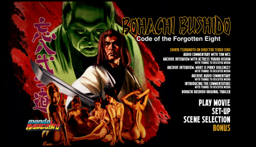 Edition Details: • Audio commentary with Japanese film expert Tom Mes • Archive audio commentary with Japanese film makers • Interview with director Shinya Tsukamoto about working with Bohachi Bushido director Teruo Ishii (17:44) • Archive interview with actress Yuriko Hishimi (21:05) • Archive interview “What is Pinky Violence?” (15:33) • Introducing the Commentators (0:42) • Bohachi Bushido theatrical trailer (3:11)