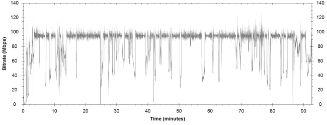 NOTE: The Vertical axis represents the bits transferred per second. The Horizontal is the time in minutes. |