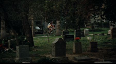 nostalgic horn-led family motif in the pre-attack bike ride scene - and
