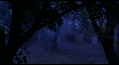 dissolves; a ghoul rises from a nearby grave and begins dispatching the