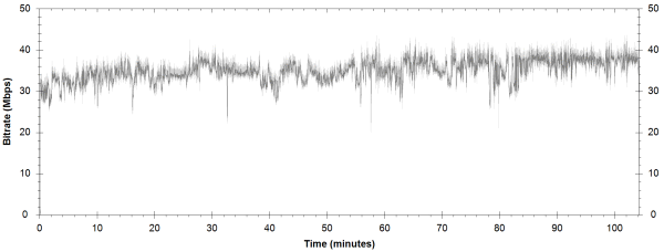 NOTE: The Vertical axis represents the bits transferred per second. The Horizontal is the time in minutes. |