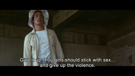 Prevalent tropes include nudity as a tool for both exploitation and character revelation, with frequent shower fights or strip searches in reform settings exposing bodies as sites of power and violation; yakuza betrayals that pit women against corrupt men, fostering themes of sisterhood; psychedelic aesthetics with funky scores and outrageous scenarios, like diamond heists or biker gang wars; and reform school escapes that frame institutional cruelty as a catalyst for rebellion, all contributing to the series' cult status as a wild, bloody fusion of grindhouse thrills and proto-feminist undertones...