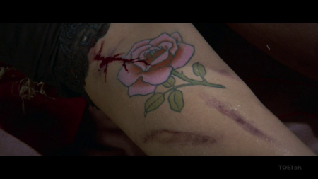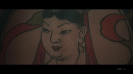 | Tattoos play a symbolic role, often adorning the bodies of sukeban leaders or yakuza-affiliated women, representing indelible marks of defiance and criminal identity in a male-dominated underworld - full-back irezumi (traditional Japanese tattoos) are revealed in dramatic disrobing scenes, such as in Girl Boss: Queen Bee's Counterattack, where they signify the protagonists' hardened pasts and empowerment, echoing broader yakuza film tropes but subverted for female agency in pinky violence narratives... |