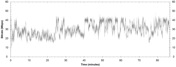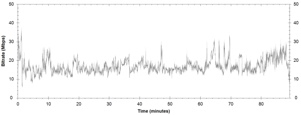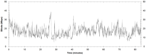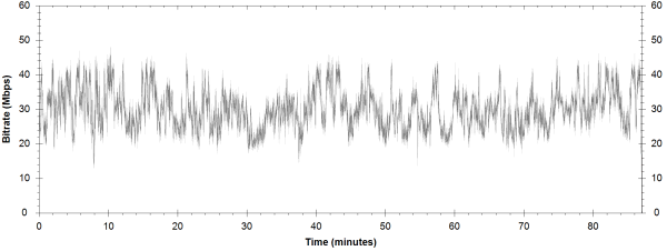 NOTE: The Vertical axis represents the bits transferred per second. The Horizontal is the time in minutes. |