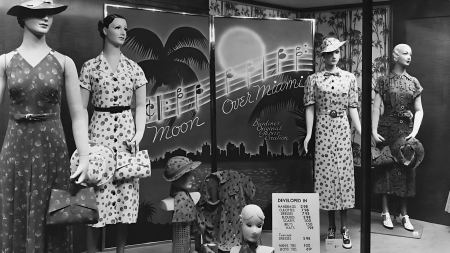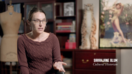 decades - from 1950s pin-up innocence to 1970s porn boom and 1990s retro