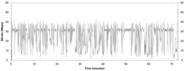 NOTE: The Vertical axis represents the bits transferred per second. The Horizontal is the time in minutes. |