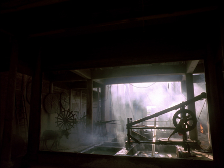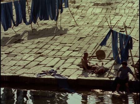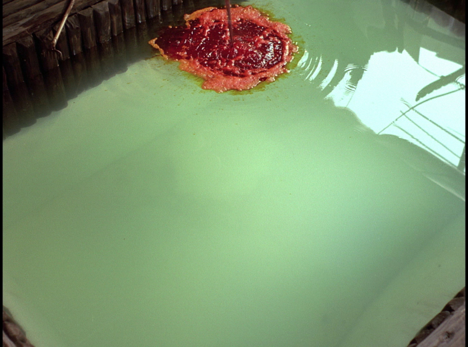 color and mise-en-scène. The dye mill serves as both literal workplace and