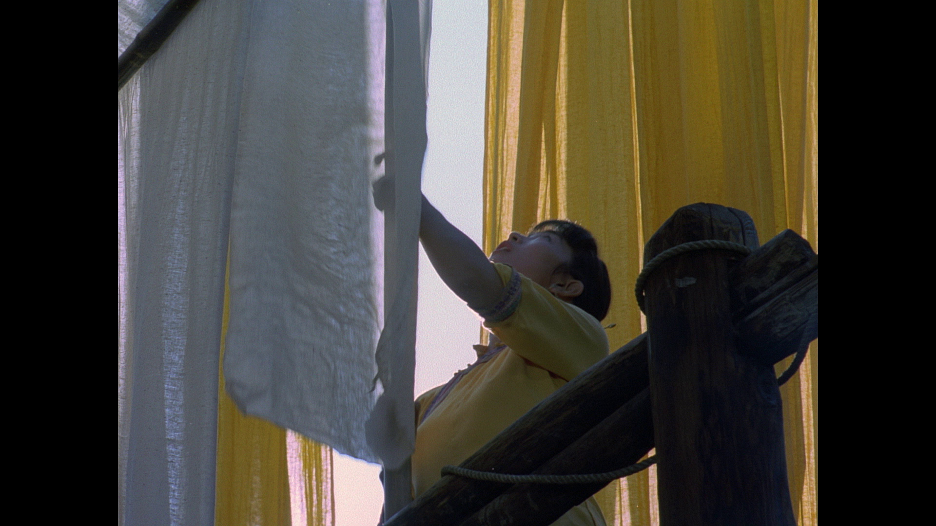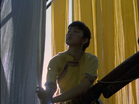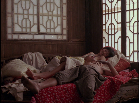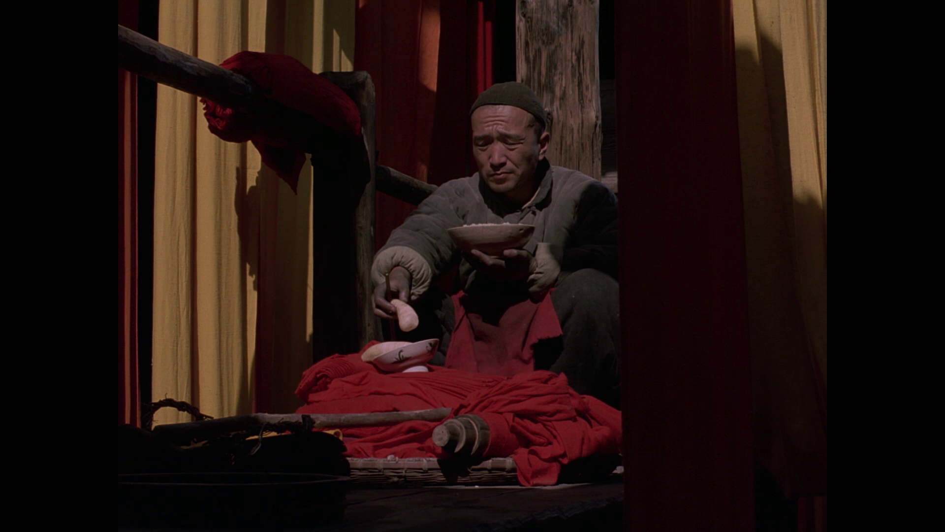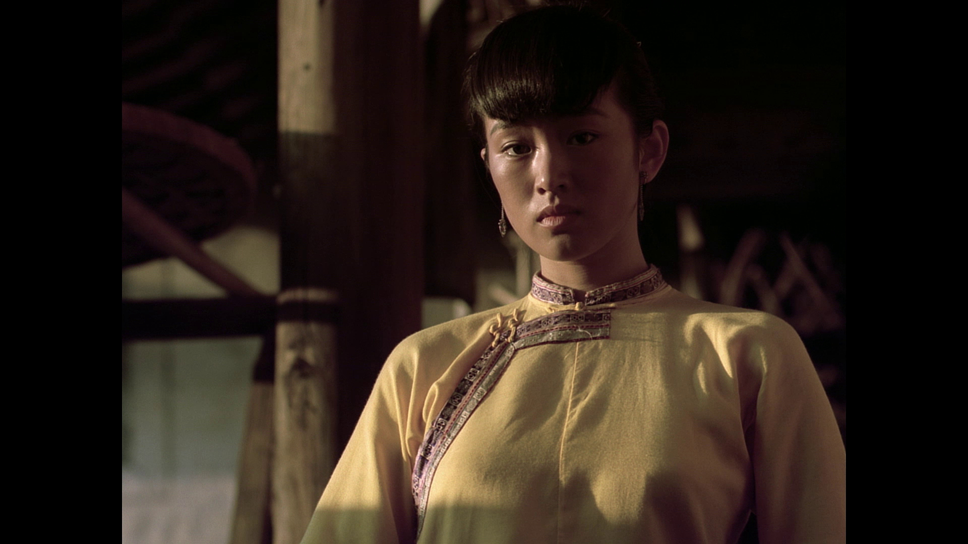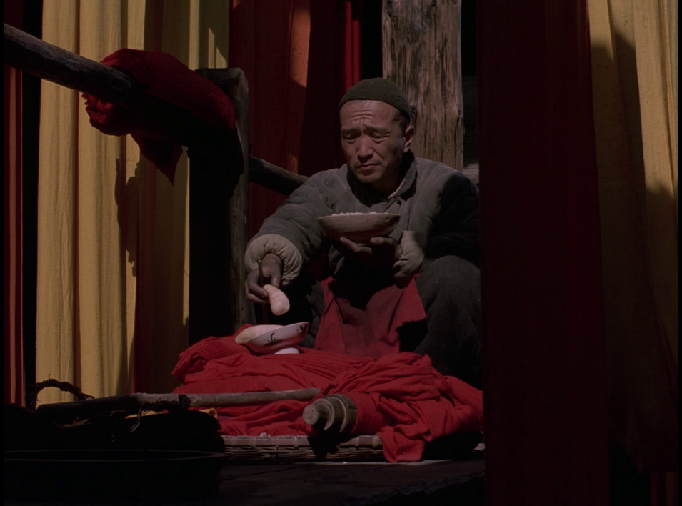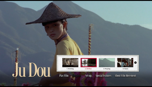 ADDITION: Film Movement Blu-ray (April 2026): Film Movement have also transferred Zhang Yimou's "Ju Dou" to Blu-ray. They presents a new 4K restoration from the original Technicolor negative (handled at Hiventy Laboratory in Paris), delivering the most vibrant and film-like presentation of Ju Dou yet. Colors show consistency with saturated reds, indigos, and yellows that feel almost tactile, while fine detail in the hanging fabrics, wooden mill architecture, and Gong Li’s expressive face surpasses the solid but slightly softer 2021 Imprint Blu-ray. The Film Movement has richer black levels than its 1080P counterpart even with a lower bitrate. Compared to the older Pioneer and Razor DVDs (cropped, low-bitrate, often PAL-sourced with dirt and combing), this is a revelation - cleaner, more stable, with natural film grain and far better dynamic range. Minor gate weave or source limitations from the original photography remain, but overall it honors Zhang’s painterly visuals magnificently. Cinematographers Gu Changwei (Altman's The Gingerbread Man, Farewell My Concubine, Red Sorghum,) and Lun Yang (Raise the Red Lantern) use dynamic tracking shots through the mill’s narrow passages, overhead compositions that emphasize entrapment, backlighting that silhouettes figures against glowing fabrics, and rhythmic use of empty frames or hanging cloth to create visual pauses filled with tension. Mise-en-scène is meticulous: every prop, ritual object, and architectural detail feels lived-in and symbolically charged. The result is expressionistic melodrama - beauty and oppression intertwined, where the eye is constantly seduced even as the narrative grows darker. This HD presentation is extremely pleasing.