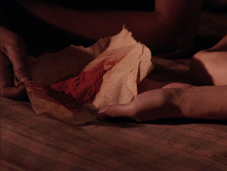 plunging into dye vats during their lovemaking), yet also blood, danger, and