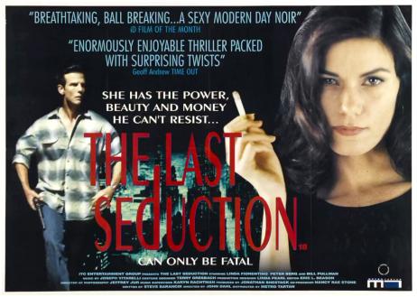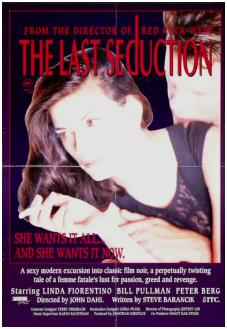 *** The Last Seduction (1994) is a sharp, stylish neo-noir erotic thriller directed by John Dahl that stands out as one of the best femme-fatale films of the 1990s. Linda Fiorentino delivers a career-defining, ice-cold performance as Bridget Gregory, a ruthless, quick-witted telemarketing manager who steals $700,000 in drug money from her abusive husband Clay (Bill Pullman) after he slaps her, then flees to a quiet upstate New York town under the alias Wendy Kroy. There, she seduces and manipulates the earnest but gullible local Mike Swale (Peter Berg) into becoming an unwitting pawn in her escalating schemes, blending sexual magnetism, verbal cruelty, and calculated deceit as she outmaneuvers everyone around her. With its twisty plot, dark humor, sleek visuals, and unapologetic celebration of a thoroughly amoral anti-heroine, the film updates classic noir tropes for a modern audience and earned widespread critical acclaim, though Fiorentino’s Oscar buzz was derailed by its prior HBO airing. It remains a gripping, morally ambiguous gem that rewards rewatches for its clever dialogue and relentless energy. |
