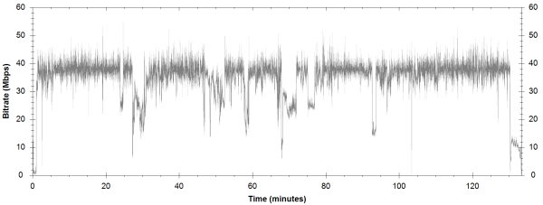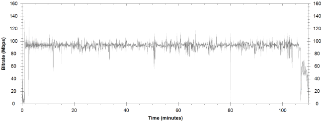 NOTE: The Vertical axis represents the bits transferred per second. The Horizontal is the time in minutes. |