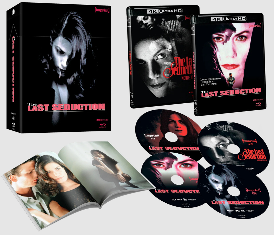 The extended version on disc four (Blu-ray) is presented in standard definition (SD) upscaled, exactly like the earlier “Director’s Cut” found on previous Network Blu-ray releases (see our 2015 review HERE - that older BD exhibited edge-enhancement.) It is a hybrid reconstruction: the bulk of the film uses the newly restored high-definition theatrical footage, but the newly re-inserted deleted scenes come from lower-resolution standard-definition sources (often described as workprint material with visible timestamps or softer quality). This results in noticeable quality drops during the added sequences, making the extended cut more of a curiosity for completists and fans interested in John Dahl’s longer assembly rather than a premium viewing experience. It still includes its own exclusive audio commentary by Dahl, which provides valuable context on the editing choices. The 4K UHD theatrical version offering superior detail, dynamic range, color depth (especially the cool blues and striking reds), and more layered contrast that significantly improves upon previous DVD and earlier Blu-ray releases. The brand-new Noir Edition on Disc Three (4K UHD in black-and-white, also Dolby Vision), which you may consider a stylish highlight that enhances the film’s neo-noir atmosphere through high-contrast lighting and deep shadows looks delightful. The grayscale is striking and carefully graded rather than a simple desaturation of the color version. It showcases inky blacks, brilliantly crisp whites, and excellent shadow gradation that create moody, ominous depth - perfect for the film’s smoky bars, narrow hallways, low-light interiors, and predatory atmosphere. Fine detail remains sharp, film grain is natural and well-resolved, and the high-contrast lighting (enhanced by cinematographer Jeffrey Jur’s - Unforgettable, Dexter TV series) makes the neo-noir aesthetic feel more classic and immersive. Some may consider it the film's standout presentation of the package.