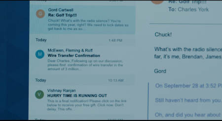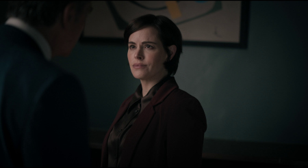 ruthless pharma CEO Rachel (Emily Hampshire -