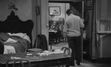 black-and-white imagery: deep-focus compositions that isolate characters