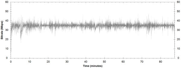 NOTE: The Vertical axis represents the bits transferred per second. The Horizontal is the time in minutes. |