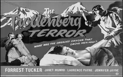 When inexplicable deaths and some other strange occurrences occur in the Swiss Alps, American scientist Alan Brooks wants to get to the bottom of the matter. The supernaturally gifted Ann Pilgrim is also attracted by the unusual cloud that has settled in the mountains near the village of Trollenberg. Soon, all involved must find that a gruesome secret is hidden in the cloud that puts all humanity in danger. *** The Trollenberg Terror (1958), also widely known in the United States as The Crawling Eye, is a classic British science fiction horror film directed by Quentin Lawrence and starring Forrest Tucker as a UN troubleshooter investigating bizarre decapitations and mysterious accidents around a Swiss Alpine resort near the fictional Mount Trollenberg. Adapted from a lost 1956 ITV television serial, the story follows a radioactive cloud hovering unnaturally on the mountain that harbors grotesque, tentacled extraterrestrial beings with enormous, disembodied eyes capable of telepathic influence and brutal killings. Joined by a journalist (Laurence Payne) and a psychic young woman (Janet Munro) who experiences visions of the horrors, the protagonists race to stop the creatures before they descend upon the village below. Despite its low budget and somewhat dated special effects—including famously campy monster models—the film builds effective atmosphere through its isolated mountain setting, eerie fog-shrouded tension, and nods to contemporary sci-fi like the Quatermass stories, earning a cult following for its blend of 1950s alien invasion paranoia and old-school monster menace. |